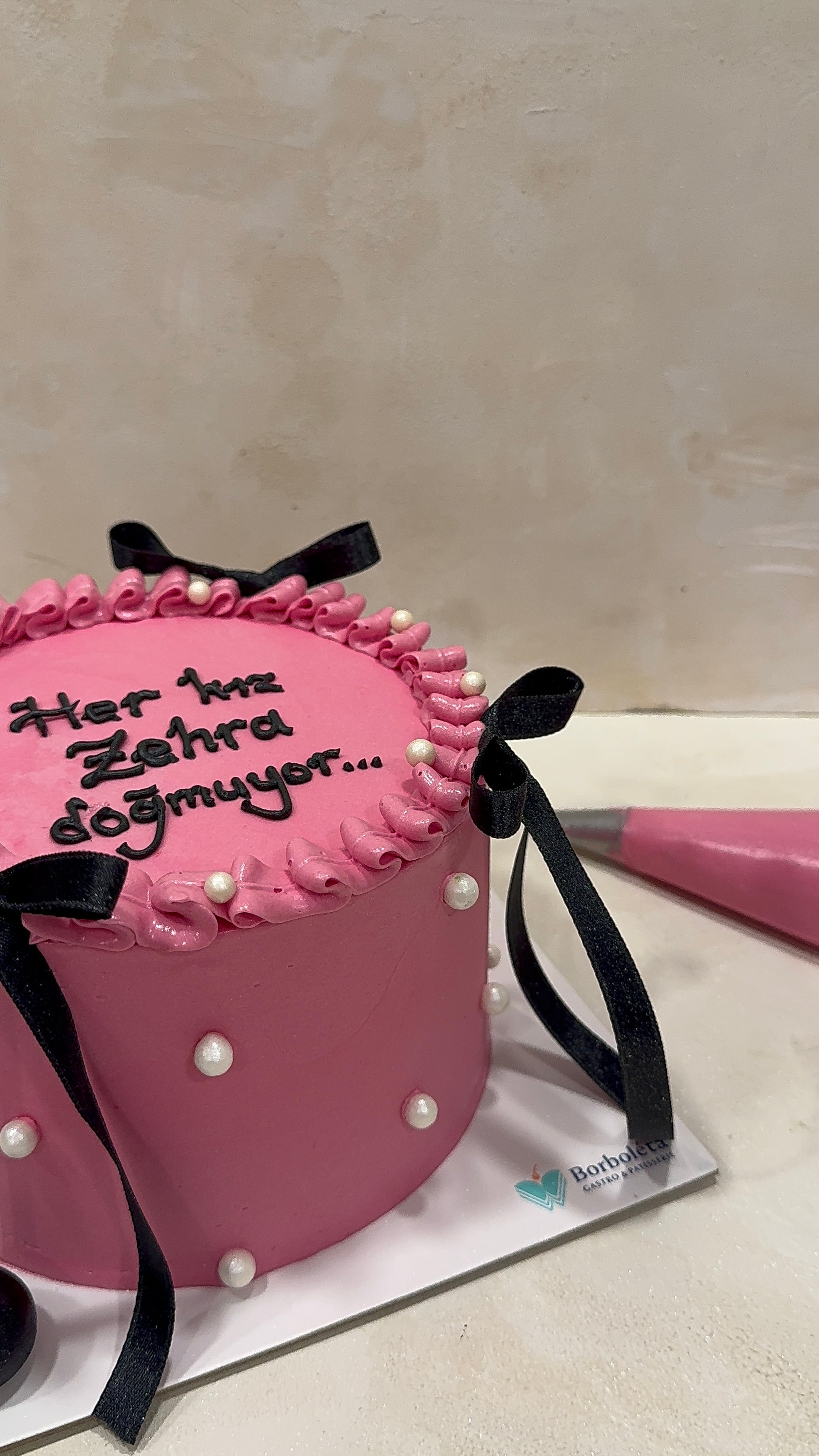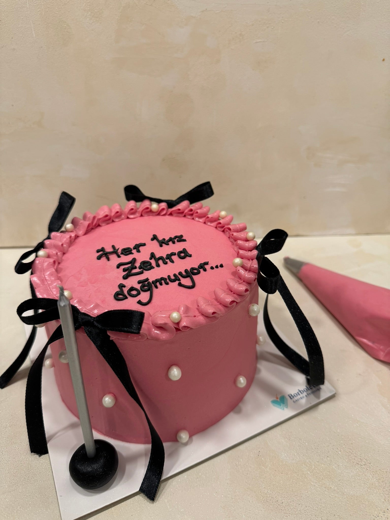 Yazılı Retro İnci Süslemeli Pasta