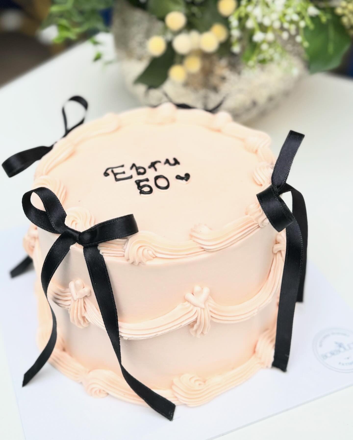 Retro Siyah Kurdeleli Doğum Günü Pastası