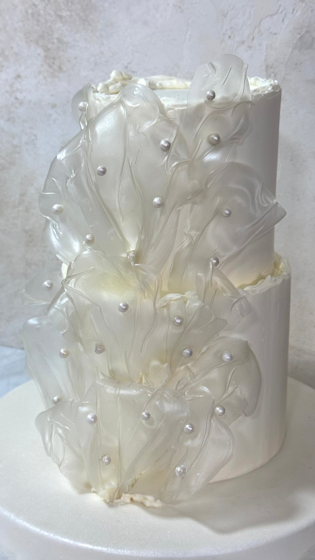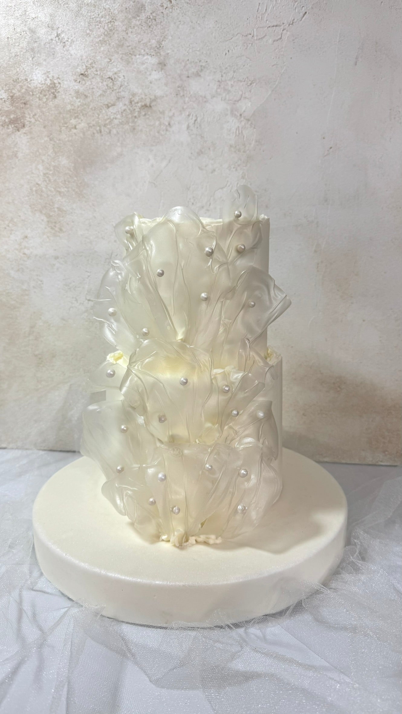 İnci ve Beyaz Dekor Süsleme Görünümlü Pasta