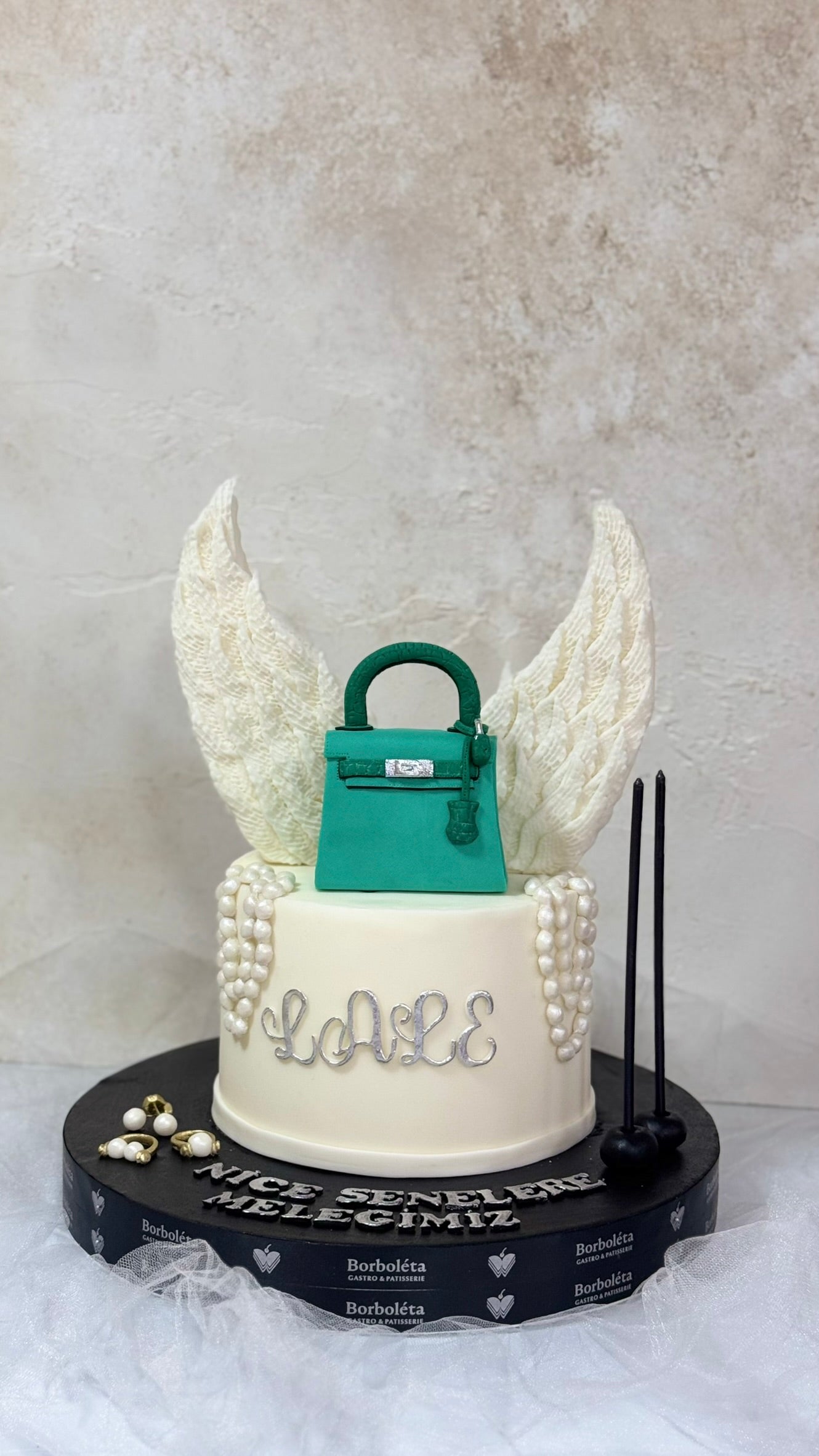 İncili ve Çantalı Kadın Doğum Günü Pastası